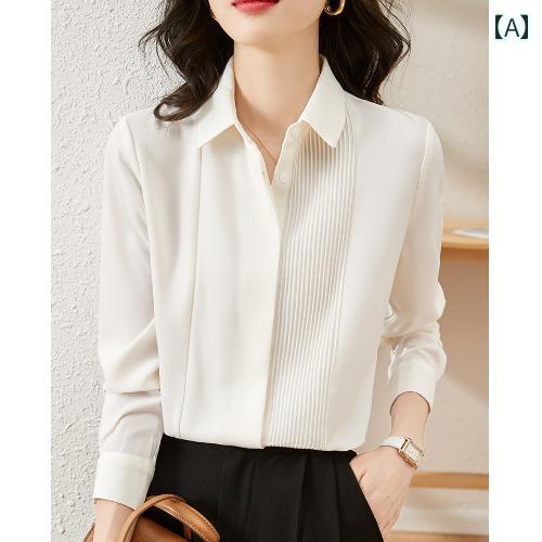 【特価セール】 レディース トップス シャツ ブラウス シャツブラウス シフォンシャツ ビックカラー風 ゴールドボタン ポロ襟 襟付き 袖あり 長袖 清楚 大人ガーリー 大人カジュアル 大人フェミニン きれいめ シン